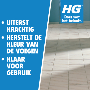 HG voegenreiniger verwijdert sterke vervuiling van vrijwel alle voegen tussen wandtegels, vloertegels en bakstenen. Door de eigenschappen van dit product blijft de werking gedurende de inwerktijd en het naborstelen op hetzelfde krachtniveau actief, waardoor het een geweldig resultaat zal geven. HG voegenreiniger is ook verkrijgbaar in een concentraat variant. Blijft er gele of bruine vervuiling achter na het reinigen, dan is dat kalkaanslag en adviseren wij dit te verwijderen met HG kalkweg concentraat. Voor het verwijderen van zwart uitgeslagen voegen in de badkamer, adviseren wij HG schimmelreiniger.