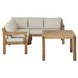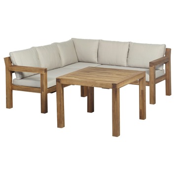 De high dining set Curinga is een prachtige robuuste en natuurlijk uitziende set waar je lekker in kan loungen en waar je ook aan kunt dineren vanwege zijn hoge tafel. De high dining set is gemaakt van de hardhout soort Acacia. De set heeft heerlijk comfortabele kussens. De kussens zijn waterafstotend en UV bestendig waardoor de kleur langer behouden blijft. Omdat hout een natuur product is gaat het na verloop van tijd leven. Alle houten tuinmeubelen zijn voor behandeld met een olie laag, na verloopt van tijd kunnen er scheurtjes en verkleuring ontstaan. Met de juiste behandeling blijft het hout lang mooi van kleur.