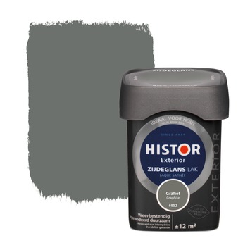 De Histor Exterior lak zijdeglans grafiet 750 ml is een hoogglanzende lak die goed zorgt voor je houtwerk buiten. Met Histor Exterior lak ziet je houtwerk er namelijk uit als nieuw en kan het er weer jaren tegen. De lak is weerbestendig en hierdoor duurzaam. Zowel op de mengmachine als kant-en-klaar verkrijgbaar. Tip: gebruik Histor Exterior bij een temperatuur tussen 10° en 25° Celsius en niet bij vochtig weer.