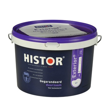 Histor EXTERIOR MUURVERF 2,5L 7000 WIT is een weerbestendige en duurzame matte witte muurverf voor je buitenmuren. Daarnaast is het ook heel geschikt voor intens gebruikte ruimtes zoals je badkamer of keuken. De verf is van de hoogste kwaliteit, zodat je er jaren plezier van hebt. De verf is kant-en-klaar verkrijgbaar, maar ook op de mengmachine in elke kleur die je wilt. Tip: schilder Histor EXTERIOR MUURVERF 2,5L 7000 WIT bij een temperatuur tussen 10°C en 25°C en niet bij vochtig weer.