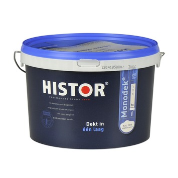 Histor Monodek 2,5l 9001 gebroken wit is een in één laag dekkende witte matte muurverf voor plafonds en muren binnenshuis. Het is makkelijk verwerkbaar en omdat je maar één laag muurverf nodig hebt ben je zó klaar met je klus. Je kunt histor Monodek 2,5l 9001 gebroken wit gebruiken voor steenachtige ondergronden en o. A. Gipskarton, hard- en zachtboard.