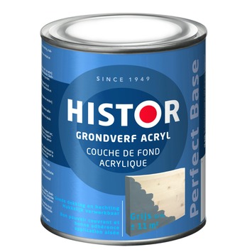 Histor Perfect Base grondverf acryl grijs 750 ml is een watergedragen grondverf voor binnengebruik. Omdat de grondverf vochtregulerend is, kan deze gebruikt worden voor het gronden en overgronden van nieuw hout of oud hout met een oude, maar intacte verflaag. Ook metalen die behandeld zijn met een corrosiewerende grondverf zijn geschikt. De grondverf hecht en dekt daarbij goed. De verf is waterverdunbaar.