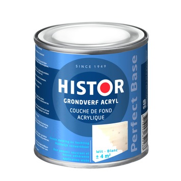 Histor Perfect Base grondverf acryl wit 250 ml is een watergedragen grondverf voor binnengebruik. Omdat de grondverf vochtregulerend is, kan deze gebruikt worden voor het gronden en overgronden van nieuw hout of oud hout met een oude, maar intacte verflaag. Ook metalen die behandeld zijn met een corrosiewerende grondverf zijn geschikt. De grondverf hecht en dekt daarbij goed. De verf is waterverdunbaar.