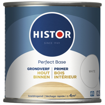 De Histor Perfect Base grondverf binnen hout wit 250 ml helpt je om houten vloeren, trappen, kozijnen, hekwerken en deuren binnen goed voor te bereiden op het schilderen. Deze grondverf is extra dekkend en zorgt voor een sterke hechting zodat de verf mooi blijft zitten. Je brengt de grondverf makkelijk aan bij temperaturen tussen de 5 en 25 graden. Omdat de verf watergedragen is, droogt hij snel en kun je na 4 uur al verder schilderen. Een liter van deze grondverf dekt ongeveer 16 m². Na 4 uur is de verf droog en klaar voor de volgende stap.