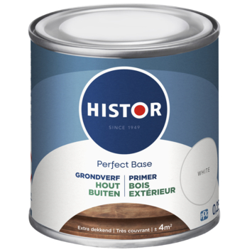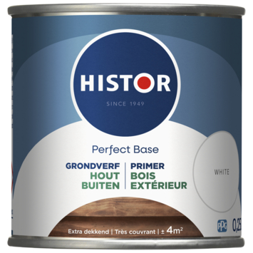 De Histor Perfect Base grondverf buiten hout wit 250 ml is gemaakt om houten kozijnen, deuren en hekwerken goed voor te bereiden op buitenschilderwerk. Deze grondverf hecht sterk en dekt extra goed zodat de verf lang blijft zitten. Je gebruikt deze terpentinegedragen grondverf bij temperaturen tussen de 5 en 25 graden. De verf is makkelijk aan te brengen en droogt in 16 uur. Daarna kun je de volgende laag schilderen. Met een rendement van 16 m² per liter leg je een stevige basis voor je buitenschilderklus.