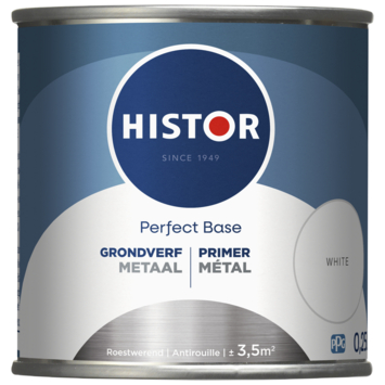 De Histor Perfect Base grondverf metaal wit 250 ml zorgt ervoor dat je metalen deuren, hekwerken, trappen, kozijnen, verwarmingsbuizen en radiatoren binnen en buiten goed voorbereid zijn op het schilderen. De Histor Perfect Base grondverf metaal wit 250 ml hecht uitstekend en dekt extra goed zodat je met een stevige ondergrond verder kunt werken. Deze watergedragen grondverf is roestwerend en beschermt het metaal tegen roestvorming. Je kunt de verf verwerken bij temperaturen tussen de 5 en 25 graden. De verf droogt in 6 uur en is daarna klaar om overgeschilderd te worden. Met een rendement van 15 m² per liter leg je een sterke basis voor de eindlaag.