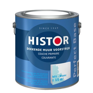 Histor Perfect Base voorstrijk grijs 2,5 l is een watergedragen, dekkend voorstrijkmiddel voor binnengebruik. Met de voorstrijk weet je zeker dat je eindresultaat prachtig dekkend en strak wordt. Behalve het wegnemen van lichte zuigingsverschillen zorgt de voorstrijk ook voor fixatie van restanten van een licht poederende ondergrond op je muur. Eenmaal op je muur is de voorstrijk overschilderbaar met latex en synthetische muurverf. Histor Perfect Base dekkende voorstrijk is zowel kant-en-klaar als op de mengmachine verkrijgbaar.