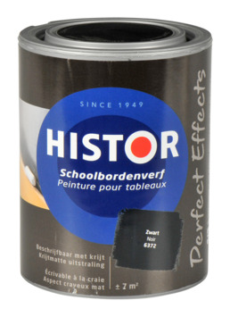 Met Histor Perfect Effects schoolbordenverf mat zwart 1 l maak je van je muur, deur, tafel of kast één groot kladblok. Het beschilderde vlak kan daarna namelijk beschreven worden met schoolkrijt. Geen professor of Picasso in de dop in huis? Je kunt de verf ook gebruiken als hoogdekkende zeer matte muurverf. Histor schoolbordverf is kant-en-klaar. Naast de kant-en-klare variant kan je ook in elke andere kleur kiezen op de mengmachine.
