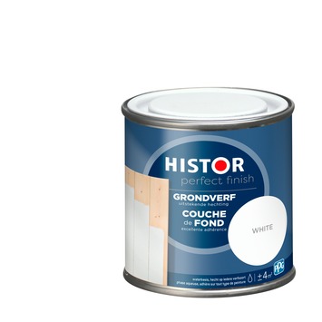 Histor Perfect Finish grondverf 7000 wit 250 ml is geschikt voor hout, metaal en kunststof. De grondverf is op waterbasis en kan gebruikt worden over elke vorige verfsoort heen, dus ook over terpentineverf. Als je kaal hout, metaal of kunststof hebt, breng dan altijd ruim voldoende grondverf aan voor een goede hechting van de laklaag. Histor Perfect Finish grondverf zorgt voor deze goede hechting, de grondverf is optimaal dekkend en geurarm. De verf is makkelijk aan te brengen en is sneldrogend. Na 1 uur is de verf stofdroog en na 5 uur overschilderbaar. Standaard is Histor Perfect Finish grondverf beschikbaar in wit en grijs, maar deze grondverf is ook in iedere gewenste kleur te mengen bij de verfmengbalie in de Karwei bouwmarkt. 1 blik van 250 ml is voldoende voor ongeveer 4m2.