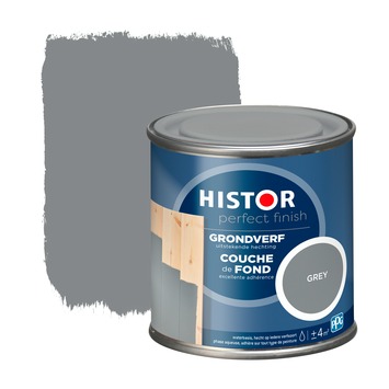 Histor Perfect Finish grondverf RAL 7037 grey 250 ml is geschikt voor hout, metaal en kunststof. De grondverf is op waterbasis en kan gebruikt worden over elke vorige verfsoort heen, dus ook over terpentineverf. Als je kaal hout, metaal of kunststof hebt, breng dan altijd ruim voldoende grondverf aan voor een goede hechting van de laklaag. Histor Perfect Finish grondverf zorgt voor deze goede hechting, de grondverf is optimaal dekkend en geurarm. De verf is makkelijk aan te brengen en is sneldrogend. Na 1 uur is de verf stofdroog en na 5 uur overschilderbaar. Standaard is Histor Perfect Finish grondverf beschikbaar in wit en grijs, maar deze grondverf is ook in iedere gewenste kleur te mengen bij de verfmengbalie in de Karwei bouwmarkt. 1 blik van 250 ml is voldoende voor ongeveer 4m2.