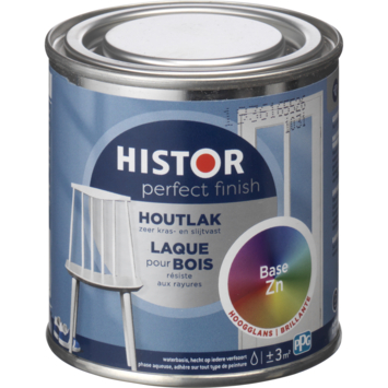 Histor Perfect Finish houtlak is geschikt voor het aflakken van hout, metaal en kunststof. De lak is zeer kras- en slijtvast en extra dekkend. De lak is op waterbasis en kan gebruikt worden over elke vorige verfsoort heen, dus ook over terpentineverf. De verf is makkelijk aan te brengen en is sneldrogend. Na 1 uur is de verf stofdroog en na 5 uur overschilderbaar. Verf op terpentinebasis in lichte kleuren kan bij weinig daglicht vergelen. Histor Perfect Finish is een watergedragen houtlak en vergeelt daarom niet en behoudt zijn kleur. Daarnaast is de verf geurarm.