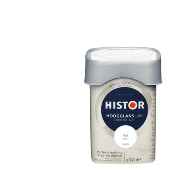 Histor Perfect Finish lak hoogglans wit 750 ml is een verf die zowel binnen als buiten gebruikt kan worden. De verf geeft een optimale glans en een egaal aanzien. Histor Perfect Finish hoogglans lak is extra dekkend, beschermt tegen krassen en blijft lang zijn glans en kleur behouden. Voor schilderwerk dat tegen een stootje moet kunnen dus. De vierkante pot is makkelijk te openen en sluiten, makkelijk schenkbaar en makkelijk vast te houden. Histor Perfect Finish is verkrijgbaar in kant-en-klare kleuren, maar ook in jouw eigen favoriete kleur op de mengmachine.