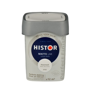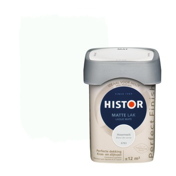 Histor Perfect Finish lak mat hoornwit 750 ml is een lak met een mooie, zachte en neutrale uitstraling die geschikt is voor zowel binnen- als buitengebruik. Eenvoudig aan te brengen met kwast of roller. De lak dekt snel en slijt langzaam. Daardoor hoef je minder vaak te schilderen en heb je minder verf nodig. De vierkante pot is makkelijk te openen en sluiten, makkelijk schenkbaar en makkelijk vast te houden. Histor Perfect Finish is verkrijgbaar in kant-en-klare kleuren, maar ook in iedere andere kleur op de mengmachine.