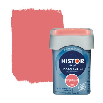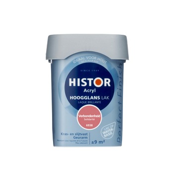 Histor Perfect Finish lak waterbasis hoogglans verbondenheid 750 ml is een hoogglans lak voor gebruik binnenshuis. De verf is watergedragen en dat betekent dat je de verf met water kan verdunnen en je geen vervelende verfluchtjes meer hebt. De verf geeft een optimale glans en dekt extra goed wat betekent dat je met minder lagen verf af kunt. Ook is de verf bestand tegen krassen en slijtage. De eenmaal aangebrachte verf kan er dus jaren tegen. De vierkante pot is makkelijk te openen en sluiten, makkelijk schenkbaar en makkelijk vast te houden. Histor Perfect Finish is verkrijgbaar in kant-en-klare kleuren, maar ook in jouw eigen favoriete kleur op de mengmachine.