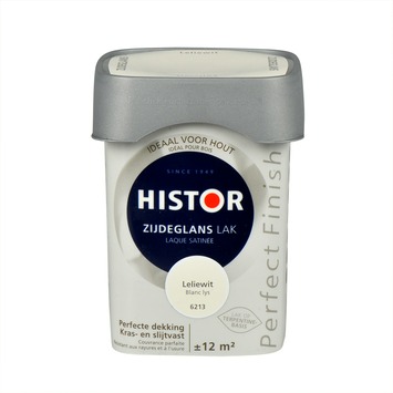 Histor Perfect Finish lak zijdeglans leliewit 750 ml is een lak met een mooie, lichte glans, tussen hoogglans en mat in, en heeft een egaal aanzien. De lak kan zowel binnen als buiten gebruikt worden op een ondergrond van hout, of op een andere ondergrond voorzien van een voorgaande (grond)verflaag of plamuurlaag voorzien van grondverf. De lak dekt goed en is kras- en slijtvast waardoor je minder snel weer hoeft te schilderen en uiteindelijk minder verf nodig hebt. Dat maakt de verf geschikt voor oppervlakten die tegen een stootje moeten kunnen, zoals deuren, kozijnen, plinten of meubelen. De vierkante pot is makkelijk te openen en sluiten, makkelijk schenkbaar en makkelijk vast te houden. Histor Perfect Finish is verkrijgbaar in kant-en-klare kleuren, maar ook in jouw eigen favoriete kleur op de mengmachine.