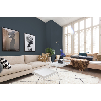 Erg tevreden over deze kleur, mooi kleur blauw, vind hem heel chique, voor een mooie dekking op een witte muur wel 2 keer aanbrengen.