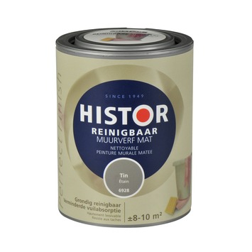 Histor Perfect Finish muurverf reinigbaar mat 1l 6928 tin is een matte muurverf ideaal voor vuilgevoelige ruimtes als hal, kinderkamer, trappenhuis, keuken etc. Hardnekkige vlekken als modder, ketchup, stiften zijn namelijk makkelijk en goed te verwijderen met een schoonmaakdoekje. Uniek daarnaast is dat de muur niet gaat opglimmen na het schoonmaken, wat bij een reguliere muurverf wel het geval is. Histor Perfect Finish reinigbaar is verkrijgbaar in diverse kant-en-klare kleuren, bijvoorbeeld histor Perfect Finish muurverf reinigbaar mat 1l 6728 tin, maar ook in elke gewenste kleur op de histor mengmachine.