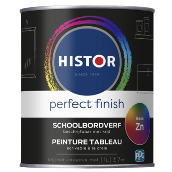 Histor Perfect Finish Schoolbordverf heeft een hoge dekkracht en hecht goed op geschilderd werk. Schoolbordverf is geschikt voor zowel muren als houtwerk. Hierbij kunt u denken aan een deur, een tafel of een kast. Eenmaal aangebracht is het goed beschrijfbaar met schoolkrijt. Dit is niet alleen handig, maar geeft ook een speels effect aan uw interieur.