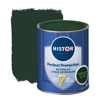 De Histor Perfect Protection buitenlak hoogglans dennengroen 750 ml biedt uitstekende bescherming voor houten oppervlakken zoals buitendeuren en kozijnen. Deze buitenlak biedt 7 jaar schildervrij garantie. Als je binnen deze periode opnieuw moet schilderen, krijg je gratis nieuwe lak. Zo weet je zeker dat jouw houtwerk lang beschermt blijft. Zie de actiepagina van Histor voor alle voorwaarden. De lak kan worden aangebracht bij temperaturen tussen de 5 en 25 graden en heeft een rendement van 16 m² per liter.