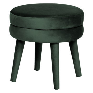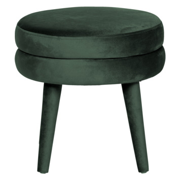 Deze luxe en sfeervolle hocker Macaron is van het Nederlandse merk WOOOD. Macaron is bekleed met een zachte velvet stof (100% polyester en 20.000 Martindale) in een warmgroene kleur. De poten zijn gemaakt van eucalyptus hout en tevens voorzien van een velvet bekleding.