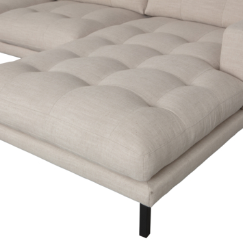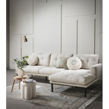 Deze royale chaise longue komt uit de collectie van het Nederlandse merk WOOOD. De River chaise longue is verkrijgbaar in een linker- en rechter variant. De bank is bekleed met een zachte combinatiestof van 54% polyester, 36% viscose en 10% linnen. Met een Martindale van 90.000 is de River chaise longue zeer geschikt voor intensief woongebruik.