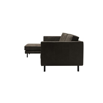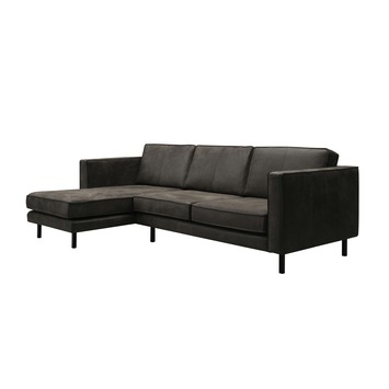 Hoekbank Ruben links leder in de kleur zwart is de moderne bank om lekker op te genieten met een goed boek of voor de televisie. Dat is het ultieme moment van thuiskomen. Maar dat ultieme moment kan natuurlijk alleen wanneer je heerlijk kan zitten of liggen op een comfortabele bank! Je bent straks niet meer van deze bank af te slaan. De bank is bekleed met oersterk glad leder (rundsleder) met een modieuze dichte stiknaad. Het zwarte leder in combinatie met de stoere, zwart gemoffelde metalen poten maken van de bank een eyecatcher in elk interieur. De metalen poten kunnen op 2 plaatsen gemonteerd worden: direct onder de armleuningen of iets meer naar binnen geplaatst. Er zijn nl. 2 bevestigingspunten voorzien naar gelang de smaak van de persoon. De hoekbank Ruben links is er ook in het rechts en in de kleur cognac of taupe glad leder en in een hoekbank rechts, 3-zits, 2,5-zits en een 4-zits uitvoering.