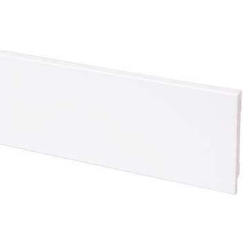 Hoge plinten, makkelijk op de muur aan te brengen met kit. Volledig wit geschilderd al, hoef je niets meer aan te doen.