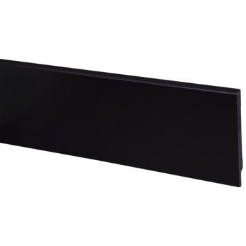 Muurplint van kwastvrij Grenen voorzien van een kras- en stootvaste zwarte matte laklaag in de kleur RAL9005. De plint heeft een lengte van 244 cm, een hoogte van 119 mm en een diepte van 12 mm na montage. Deze plint is geschikt voor toepassing in huis. Je kunt deze plint monteren met montagekit. Het gebruikte hout is FSC gecertificeerd en daarmee afkomstig uit duurzaam beheerde bossen. Afneembaar met vochtige doek en niet-agressief schoonmaakmiddel.