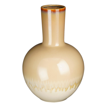 Of je nu bloemen wilt toevoegen of niet, deze Holm vaas is absoluut een blikvanger voor in huis. De grote vaas is gemaakt van stevig keramiek en is 100% handgemaakt. Met zijn neutrale, crème kleur en ronde vorm in het midden trekt deze vaas direct de aandacht. De vaas is afgewerkt met een reactieve glazuur, hierdoor is elke vaas uniek! Daarnaast creëert hij een sfeervolle ambiance met een paar losse bloemen, pluimen of siertakken. Op zoek naar een andere maat? De Holm vaas is verkrijgbaar in verschillende maten. Deze crèmekleurige vaas heeft een hoogte van 42 cm en een diameter van 27,5 cm.