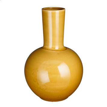 Of je nu bloemen wilt toevoegen of niet, deze Holm vaas is absoluut een blikvanger voor in huis. De grote vaas is gemaakt van stevig keramiek en is 100% handgemaakt. Met zijn vrolijke, gele kleur en ronde vorm in het midden trekt deze vaas direct de aandacht. De vaas is afgewerkt met een reactieve glazuur, hierdoor is elke vaas uniek! Daarnaast creëert hij een sfeervolle ambiance met een paar losse bloemen, pluimen of siertakken. Op zoek naar een andere maat? De Holm vaas is verkrijgbaar in verschillende maten. Deze gele vaas heeft een hoogte van 52 cm en een diameter van 34 cm.