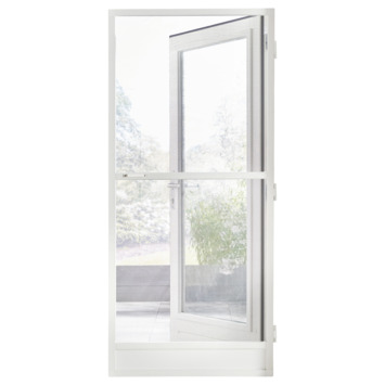 De vaste hordeur s700 is een complete set waarmee u een vaste hor kunt maken die u scharnierend op uw kozijn kunt plaatsen. Geschikt voor naar binnen en naar buiten draaiende deuren. De hoogte en breedte is eenvoudig aan te passen aan de maten van uw kozijn. De hor is uitgevoerd met extra stevige witte aluminium profielen met dempende strip om klapperen te voorkomen. De hor is voorzien van een schopplaat en magneetsluiting.