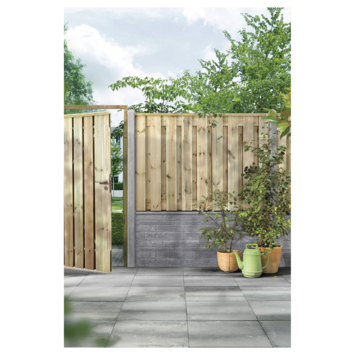 Je maakt jouw schutting helemaal compleet met een bijpassende poort. De poort heeft een breedte van ongeveer 100 cm zodat je gemakkelijk met bijvoorbeeld een (brom)fiets, scooter of kruiwagen de tuin in kunt. Je hebt de keuze uit twee houtsoorten: geïmpregneerd grenenhout of douglashout. Let bij de keuze van de poort altijd goed op de gewenste draairichting.