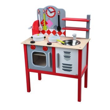 Heel Holland kookt dus ook een beginnende kok. Met deze houten keuken met houten pannen en diverse kookgereedschappen maak je de lekkerste gerechten. Deze keuken heeft een afwasgedeelte, oven, klok, kookplaat en opbergkast. De afmetingen zijn (hxbxd): 74x54x32 cm. Vanaf 3 jaar.