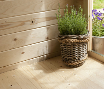 Met een houten vloer maakt u uw tuinhuis helemaal af. Daarnaast heeft het gebruik van een blokhutvloer een aantal voordelen. Bij de vloer worden geïmpregneerde houten onderbalken geleverd, hiermee wordt optrekkend vocht in de wanden van de blokhut voorkomen en wordt de levensduur van het tuinhuisje verlengd. Daarnaast zorgt de houten vloer voor een nette afwerking van het interieur van het tuinhuis.