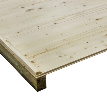 Deze houten vloer is geschikt voor tuinhuis Maui en bestaat uit geïmpregneerde houten onderbalken en onbehandelde vloerplanken welke met messing en groef in elkaar kunnen worden gezet.