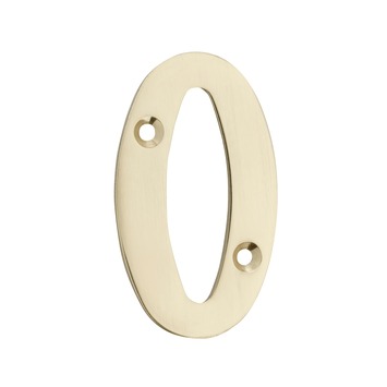Dit huisnummer is gemaakt van messing en heeft een afmeting van ongeveer 3 cm breed en 6,5 cm hoog. De afstandnokjes aan de achterkant zorgen dat het nummer loskomt van de te bevestigen achtergrond. Dit huisnummer is nummer 0.