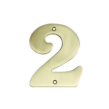 Dit huisnummer is gemaakt van messing met een bronzen kleur en heeft een afmeting van ongeveer 9 cm breed en 11 cm hoog. De afstandnokjes aan de achterkant zorgen dat het nummer loskomt van de te bevestigen achtergrond. Dit huisnummer is nummer 2.