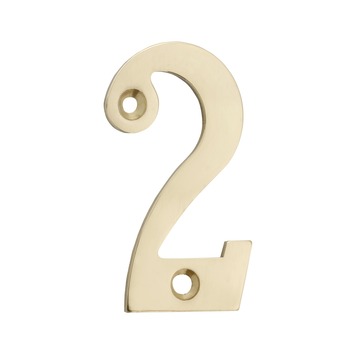Dit huisnummer is gemaakt van messing en heeft een afmeting van ongeveer 3 cm breed en 6,5 cm hoog. De afstandnokjes aan de achterkant zorgen dat het nummer loskomt van de te bevestigen achtergrond. Dit huisnummer is nummer 2.