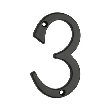 Dit huisnummer is gemaakt van aluminium met een zwarte kleur en heeft een afmeting van ongeveer 6 cm breed en 10,5 cm hoog. De afstandnokjes aan de achterkant zorgen dat het nummer loskomt van de te bevestigen achtergrond. Dit huisnummer is nummer 3.