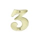 Dit huisnummer is gemaakt van messing met een bronzen kleur en heeft een afmeting van ongeveer 9 cm breed en 11 cm hoog. De afstandnokjes aan de achterkant zorgen dat het nummer loskomt van de te bevestigen achtergrond. Dit huisnummer is nummer 3.