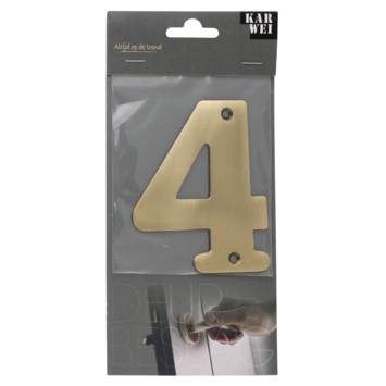 Dit huisnummer is gemaakt van messing met een bronzen kleur en heeft een afmeting van ongeveer 9 cm breed en 11 cm hoog. De afstandnokjes aan de achterkant zorgen dat het nummer loskomt van de te bevestigen achtergrond. Dit huisnummer is nummer 4.