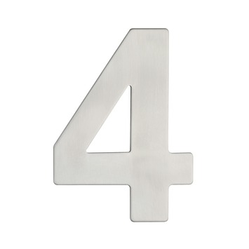 Dit huisnummer is gemaakt van RVS en heeft een afmeting van ongeveer 7 cm breed en 10 cm hoog. De afstandnokjes aan de achterkant zorgen dat het nummer loskomt van de te bevestigen achtergrond. Dit huisnummer is nummer 4.
