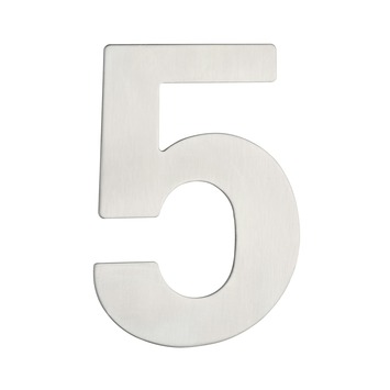 Dit huisnummer is gemaakt van RVS en heeft een afmeting van ongeveer 7 cm breed en 10 cm hoog. De afstandnokjes aan de achterkant zorgen dat het nummer loskomt van de te bevestigen achtergrond. Dit huisnummer is nummer 5.