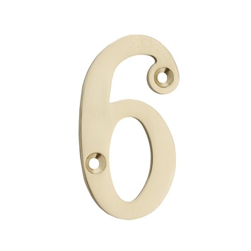 Dit huisnummer is gemaakt van messing en heeft een afmeting van ongeveer 3 cm breed en 6,5 cm hoog. De afstandnokjes aan de achterkant zorgen dat het nummer loskomt van de te bevestigen achtergrond. Dit huisnummer is nummer 6 of 9.