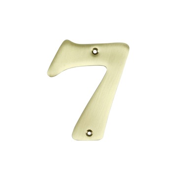 Dit huisnummer is gemaakt van messing met een bronzen kleur en heeft een afmeting van ongeveer 9 cm breed en 11 cm hoog. De afstandnokjes aan de achterkant zorgen dat het nummer loskomt van de te bevestigen achtergrond. Dit huisnummer is nummer 7.