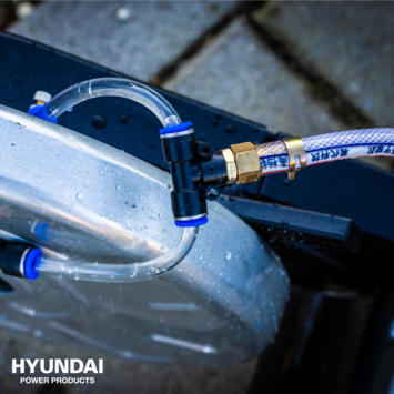 Bij het afwerken van een bestrating is het vaak nodig om stukken van de betegeling of bestrating af te zagen in een rechte lijn, Met deze Hyundai betonzaag 58cc gaat dit zeer precies en eenvoudig, Met zijn krachtige 58cc benzinemotor en diamanten zaagblad van 300 mm, kan deze cirkelzaagmachine tot 105 mm diepte zagen, Het grote handvat dat zich boven het zwaartepunt van de machine bevindt, zorgt ervoor dat deze draagbare diamant cirkelzaagmachine gemakkelijk te manoeuvreren is voor al het zaagwerk, Voor lange rechte stukken zijn er speciaal twee steunwielen aan het frame gemonteerd, Hierdoor is het mogelijk de machine te kantelen over de as van de wielen en zodoende, zonder de machine te hoeven dragen, de zaag zeer gecontroleerd in de bestrating te laten zakken en rijdend over de wielen voort te bewegen, Omdat het zwaartepunt van de machine achter de wielen ligt kan de machine ook op de wielen worden neergezet, zonder dat het zaagblad de grond raakt, als hij niet gebruikt wordt, De waterkoeling van deze bandenzaag is gerealiseerd middels een slang die voorzien is van een Gardena-koppeling, die het water injecteert in de beschermkap van de cirkelzaag, Unieke specificaties; - Merk; Hyundai Power Prodcuts, - Cylinder inhoud: 58cc, - Motor; 2-takt luchtgekoeld Euro V, - Vermogen; 2400W, - Onbelast toerental; 2800-3200 toeren per minuut, - Zaagdiepte; 105mm, - Zaagsnelheid; 4800 rotaties per minuut, - Incl, 300mm diamanten zaagblad (25,4mm asgat), - Voorzien van 2 wielen, - Inhoud benzinetank; 550ml, - Waterkoeling voorzien van Gardena-koppeling, - Gewicht; 15,4 kilogram, - Garantie; 2 jaar.