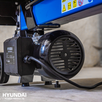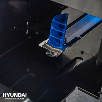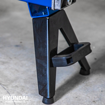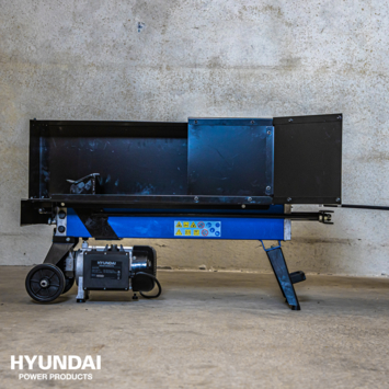 Horizontale Hyundai kloof-machine met een kloof-kracht van 5 ton, Deze machine is geschikt voor zowel particulier als (semi-)professioneel-gebruik, De machine voldoet aan de nieuwe wetgeving (sedert 2019) en is rondom voorzien van beschermkappen welke optimale veiligheid garanderen tijdens het kloven, De kloof-machine is standaard voorzien van een veilige twee-handen-bediening alsmede transportwielen met antilek-banden, Productvoordelen: - Twee-handen-bediening - Rondom voorzien van beschermkappen voor de veiligheid - Geschikt voor zowel particulier als (semi)professioneel Productspecificaties: - Merk: Hyundai - Afmeting (in verpakking): 102,5x57x58 cm (LxBxH) - Gewicht: 57 kilogram - Materiaal: Metaal - Kleur: Zwart, Blauw - Motorvermogen: 1500 Watt - Kloofkracht: 5 Ton - Maximale klooflengte: 520mm - Kloofdoorsnede: 50mm / 250mm - Max, slaglengte cilinder: 470mm - Instelbare slaglengte: Ja 150-550mm - Werksnelheid: 4,3 cm per sec, - Terugloopsnelheid: 5,7 cm per sec, - Aantal werksnelheid instellingen: 21 S - Geluidsdruk Lpa: 87 dB(A) - Max, hydraulische druk: 5 MPa - Hydrauliek tankinhoud: 3,2L, Liter max, - Afmetingen (basis stand): 1510 x 570 x 585mm (LxBxH)