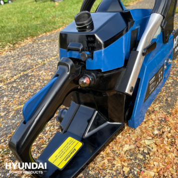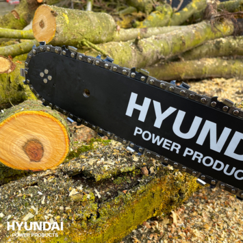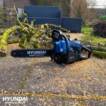 Deze krachtige Hyundai kettingzaag met 40 cm lang zaagblad is voorzien van een sterke luchtgekoelde en geluidsarme tweetaktmotor en is handig in gebruik. De machine is met name geschikt voor het snoeien en zagen van bomen en (brand)hout. De machine is voorzien van een comfortabel aanvoelende ergonomische handgreep en een veiligheidsbeugel. Veiligheidshalve beschikt deze kettingzaag over een beperkte terugslag en een kettingrem met quick-stop (0,12 seconden).