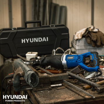 Zeer sterke 1.050 W Hyundai reciprozaag. Deze machine is geschikt voor zaagwerkzaamheden in hout, metaal en soortgelijke materialen en kent een maximale zaagdiepte in hout van 150 millimeter en voor metaal 10 millimeter. De handgreep is ergonomisch vormgegeven en voorzien van soft grip. De machine wordt geleverd in een zware kunststof koffer met 2 zaagbladen.