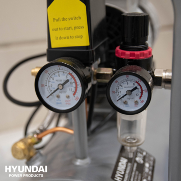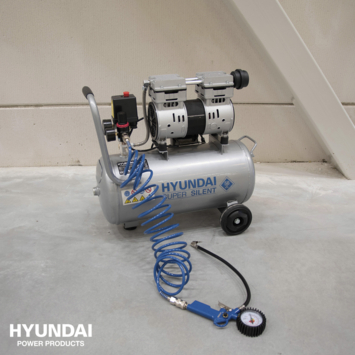 Licht in gewicht en fluisterstil. Dat is wat deze olievrije compressor van Hyundai te bieden heeft. Met een tankinhoud van 30L levert deze compressor 120 L/min. met 8 bar druk. De compressor heeft een stille pomp (2 cilinders) en is binnenshuis te gebruiken, bij het gebruik van verschillende soorten perslucht gereedschappen welke geen continue luchtstroom nodig hebben, zoals tackers, nagel & spijkerapparatuur en oppompen van autobanden maar ook zeer geschikt voor een schoonheidssalon/nagelstudio en het airbrushen. Deze compressor is voorzien van een vochtafscheider, tankdrukmeter, drukregelaar, druk-regelaarmeter en een orion/eu snelkoppeling waardoor luchtgereedschap gemakkelijk is aan te sluiten.